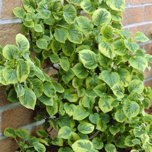 Гортензия вьющаяся Миранда представляет собой эффектную лиановидную форму, способную стать выразительным вертикальным акцентом в саду. Растение постепенно наращивает зеленую массу и в зрелом возрасте достигает до 10 метров в высоту, оплетая опоры, стены и перголы. В первые годы рост развивается медленно, после чего лиана начинает активно разрастаться. Листья широко яйцевидные, с характерным сердцевидным основанием и длинными черешками, украшены декоративной светло-жёлто-зелёной каймой, благодаря чему растение сохраняет привлекательный вид даже вне периода цветения.